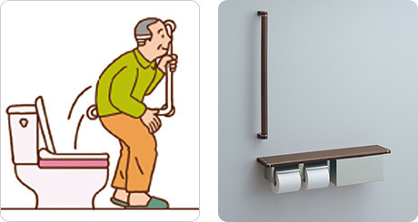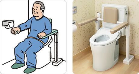 トイレに手すりを付けることで立ち座りをゆっくり確実にできるようになります。