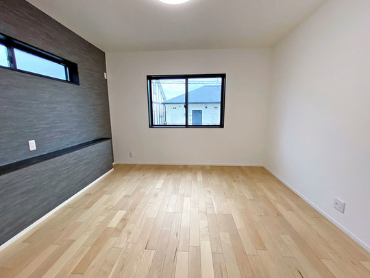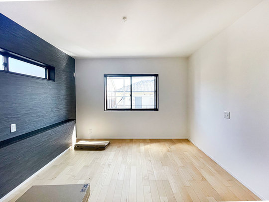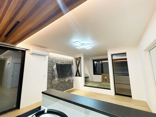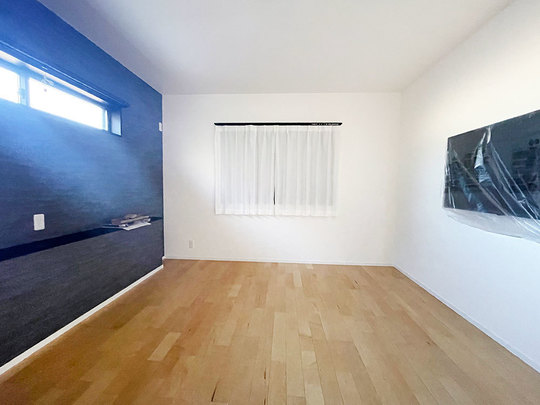 窓を塞ぎ、壁掛けテレビを設置しました。窓がない分、間接照明で部屋の明るさと、印象を演出。