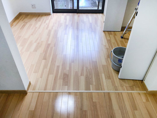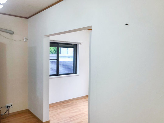 リビング隣にふすまで仕切られた和室は、扉を全開にしても障子やクロスの雰囲気で、リビングの暗さが気になっていた。明るくして、和室感をなくしたい。