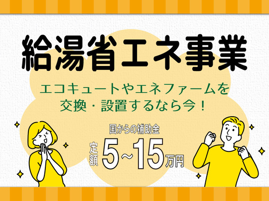 以前に補助金を利用してエコキュートを導入したご家庭では、ちょうど買い替えの時期にあたる可能性があります。新たに給湯器をエコキュートに切り替えようと考えられているご家庭も、ぜひこの機会をお見逃しなく!!