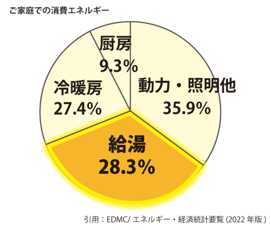 元々省エネ性能が高いエコキュートですが、10年前から比べるとさらに進化しています!ご家庭の消費エネルギーの約3割は「給湯」によるものなのです。その部分を省エネ性能が上がったエコキュートに交換すれば、節約を効果的に時間できるでしょう(*^-^*)