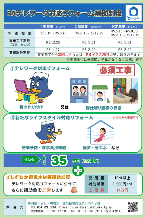 昨年度から始まった、テレワークを始めとした「新しい生活様式」に対応した住宅リフォームの補助金制度です。