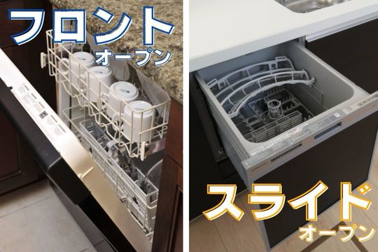 | 開閉方法 | 食器を正面から出し入れ | 食器を上から出し入れ |