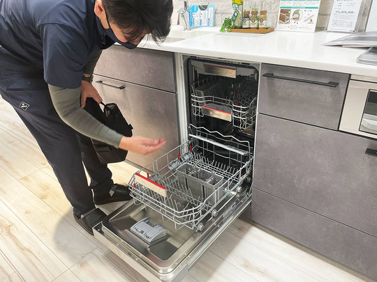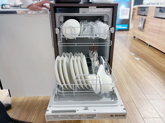 家庭用の食器洗い機には、高価なビルトイン型(システムキッチンに一体化させて設置する方式)と、比較的安価な据え置き型があります。