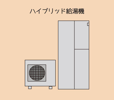 ヒートポンプ給湯器とガス給湯器を組み合わせせてお湯をつくり、タンクに蓄えるもの。2つの熱源を用いることで、より高効率な給湯が可能に。