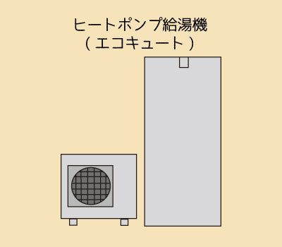 圧縮すると電気上昇し膨張すると温度が下がる、気体の性質を利用して熱を移動させるヒートポンプの原理を用いてお湯を沸かし、タンクに備えるもの。