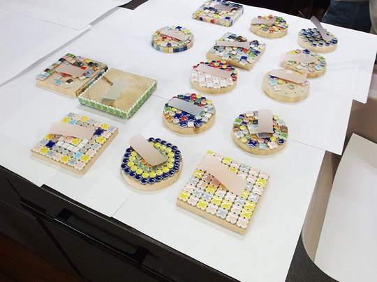 色とりどりのモザイクタイルでオリジナルな作品を作りました。