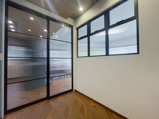 テレワークスペースを新たに新設するため、壁や扉等で他の室内と完全に独立した空間を新たに確保する工事