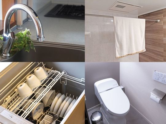 掃除しやすいトイレへの取替えまたは新設。掃除しやすいレンジフードへの取替えまたは新設。ビルトイン自動調理対応コンロへの取替えまたは新設。ビルトイン食器洗い機の新設。浴室乾燥機の新設。宅配ボックスの新設。作り付け収納の新設。自動水栓の設置