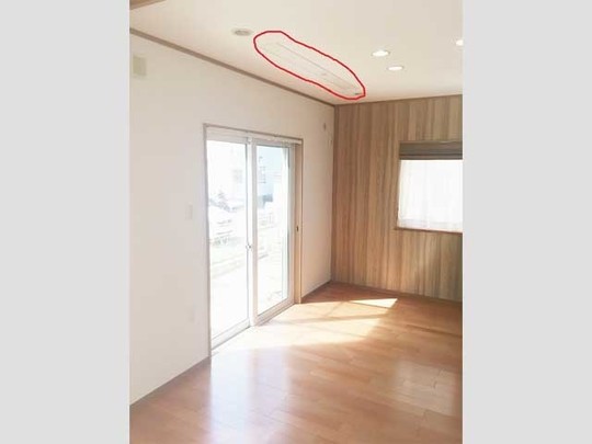 LDKリフォーム後の写真の赤〇部分には、天井物干しを設置しました。