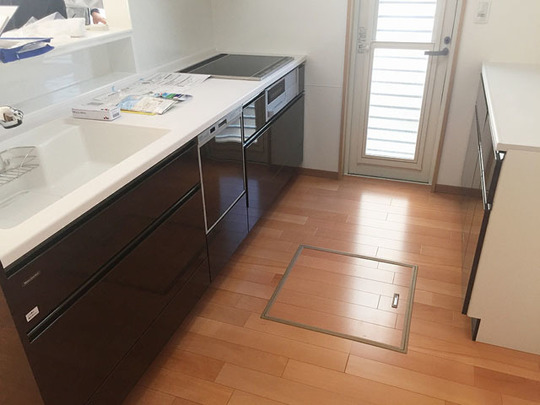 元のキッチンを取り外し、使い勝手の良いシステムキッチンを入れました。