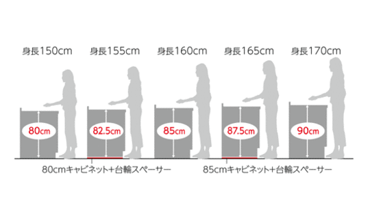 システムキッチンの多くは、女性の標準身長を考えて85cmの高さを基準に数段階の中から選べるようになっているのです!