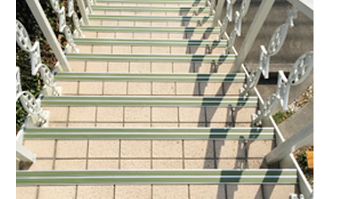 店舗の外階段の修復をし、そこに滑り止めをつけました。これで雨の日も安心ですね。
