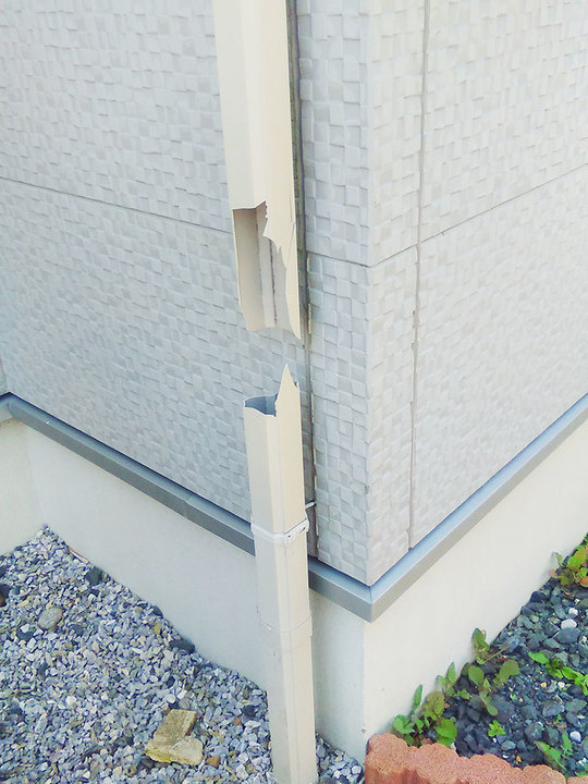 強風で隣家に落下してしまった雨樋を、交換しました。