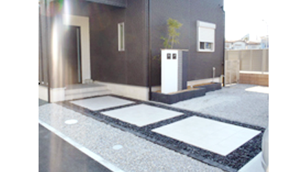 家の駐車場を新しくし、道路との境界線をつけました。サイドパネルもつけて隣との目隠しに。これで外からの視線を気にすることもなくなりました。