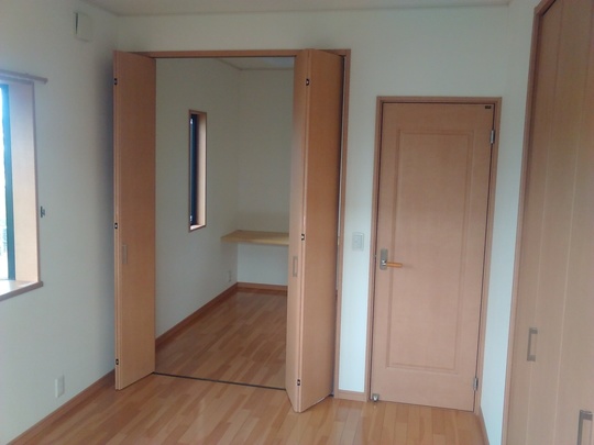 こども部屋から納戸へとつながる扉を壁にし、納戸は廊下側のみの扉になりました。扉がなくなり、壁を白で統一したので、部屋が明るく開放的な雰囲気になりました。奥の納戸は扉を1つにしたことで、子供部屋と完全に分け、書斎としても使っていくことができそうです。