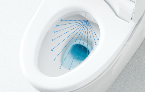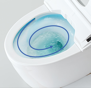 渦を巻くように流れる水流が、少ない水を有効に使ってしつこい汚れも効率よく洗浄してくれます。