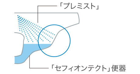 自動的に便器にミスとを吹き付け、水のクッションを作ることで汚れをつきにくくします。