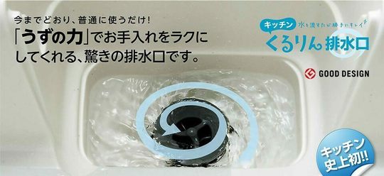 うずを巻いて流れていくから、その水流の力によって排水口が汚れにくく、お手入れがラクになります。