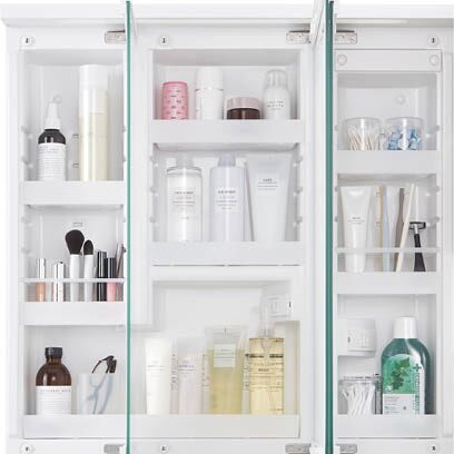 洗面化粧台の中にしまうことができれば、見た目はすっきり、掃除もしやすくなるので気持ちの良い空間になります。