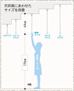 プッシュボタンを押しながらスライドすることで、ポールの長さを調整できます。