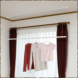 窓枠の内側に簡単に取付けることができ、日当たりを有効に使うことができます。また、操作棒などの取外すパーツがなく管理がしやすいので、賃貸住宅にもお勧め。竿を通して洗濯物や布団を干すだけではなく、単独でハンガー掛けにもなります。