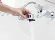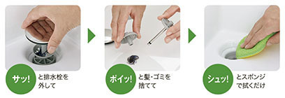 ホースを引き出して使えるので、洗面器のお手入れのラクラク便利です。