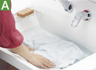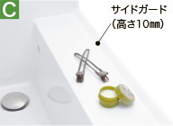 水栓まわりは、水溜まりの少ない壁付け水栓と凹凸のないハイバックガードで汚れにくく、お手入れ簡単なので綺麗を保てます。
