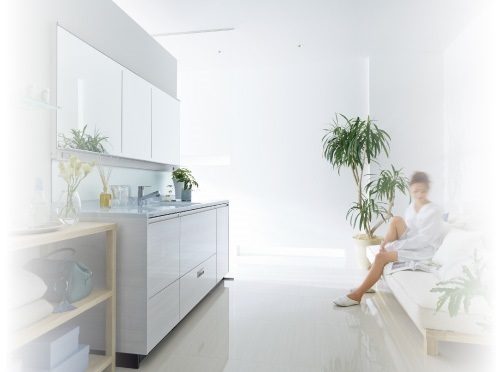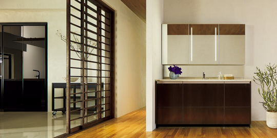 サニタリールームをあなたのもう一つのリビングに。くつろぎながら気持ちよくメイクや身支度ができたり、バスタイムの後にゆったりと癒しの時間を楽しめる空間。ちょっと贅沢な時間をお気に入りのドレッサーと。