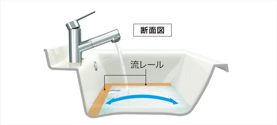 お手入れの手間を軽減。髪の毛も泡も水にのって、排水口へ。