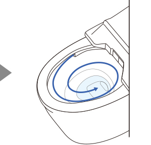 渦を巻くようなトルネード水流が、少ない水を有効に使って、しつこい汚れも効率よく洗浄。便器ボウル面をまんべんなく、しっかり洗います。