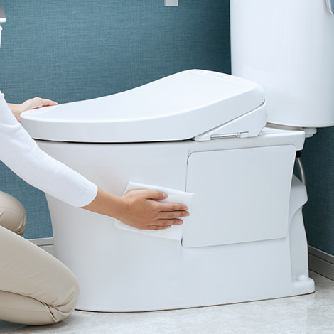 便器後部の給水管、給電コードをすっきりさせて、これまで以上に清掃性がアップしました。