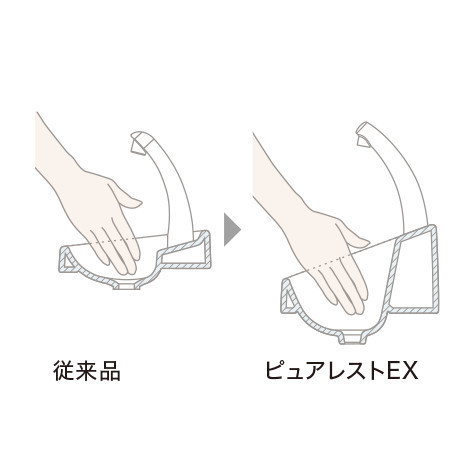 従来品と比べて、手が入るスペースをたっぷり確保した設計です。