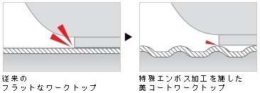 ワークトップのほぼ全面に施された