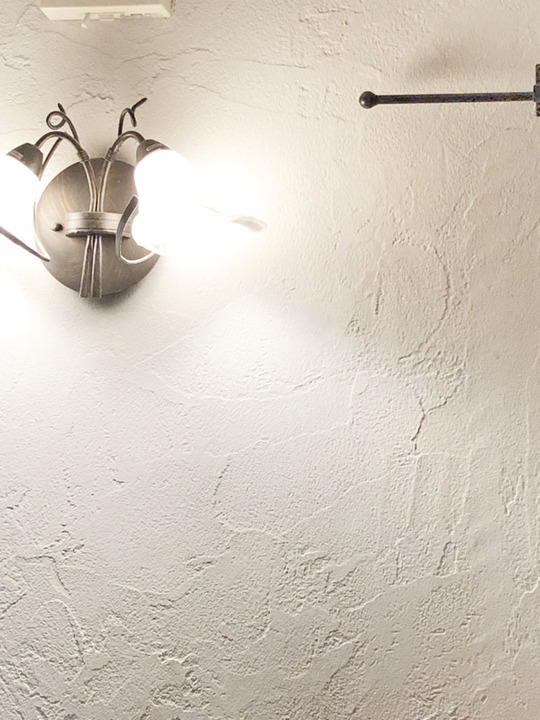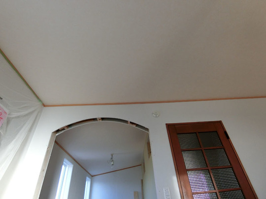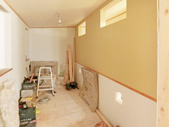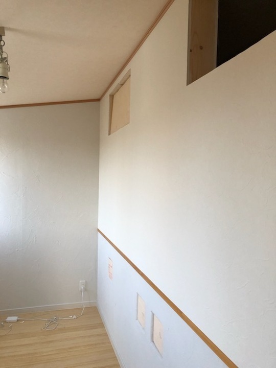 いい感じです。手摺の上にできた壁は 塗り壁調のクロスをお願いしました。