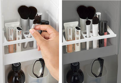 仕切りトレイは、細長いメイク道具も美しく収納します