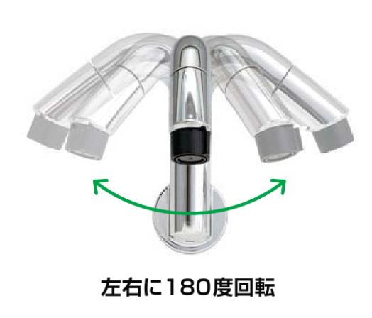 上の写真のように、使いたい位置に吐水口を左右180度回転できるため、朝の忙しい時間帯に2人並んでの身支度も可能です。