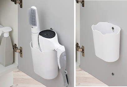 一番下のフックに取付ければ、高さのあるカールドライヤーなども収納できます。