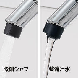 整流吐水への切り替えもできます。