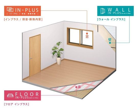 真空断熱材&床パネルと、断熱内窓『インプラス』との相乗効果で、お部屋を内側から快適にします。