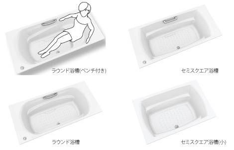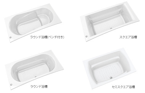 ベーシックなFRP浴槽と光沢感が魅力の人造大理石浴槽とお選びいただけます。