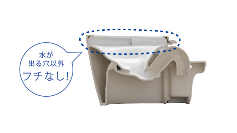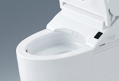 お掃除のしやすさを究めたTOTO独自のデザイン。奥までぐるーっとフチがないから、サッとひとふき、お掃除ラクラクです。