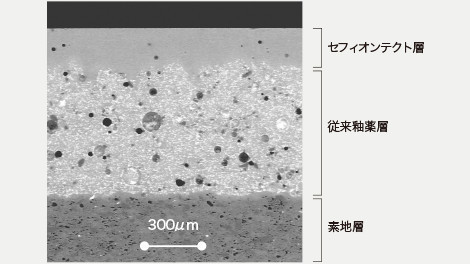 セフィオンテクトは、汚れよりきめ細かい表面の平滑性で、引っ掛かる足場がないため、汚れがツルッと落ち、美しさが持続します。
