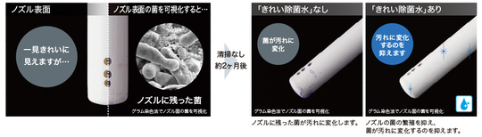 ノズルの外側も内側も、「きれい除菌水」で洗浄・除菌します。