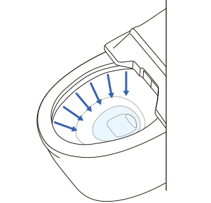 渦を巻くようなトルネード水流が、少ない水を有効に使って、しつこい汚れも効率よく洗浄。便器ボウル面をまんべんなく、しっかり洗います。