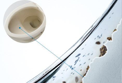 陶器表面の耐久性テストでは、ナイロン不織布たわしで40万回こすっても*、まったく傷がつきませんでした。長期にわたるトイレ掃除にも強い、セフィオンテクトならではの実力です。 *1日5回こする想定で自社試験を実施。