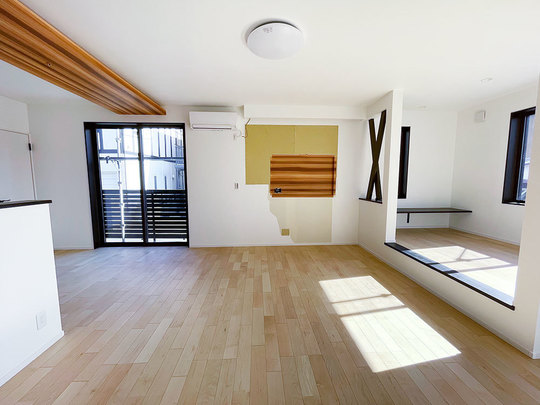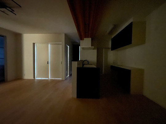 (LDK)このようにカーテンがなくとも日中でも遮光されています。カーテンだけの窓からは光が差し込んでいます。