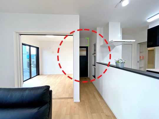 エントランスからリビングに行ける扉。天井まで垂れ壁(緑線)がある扉でした。