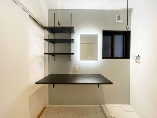 今回はランドリーのLEDミラーやタッチレス水栓、壁掛けテレビ金具はBIYでした。