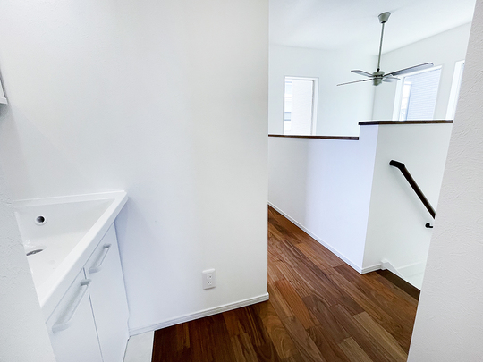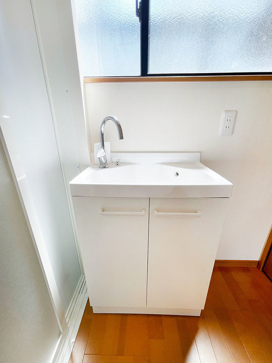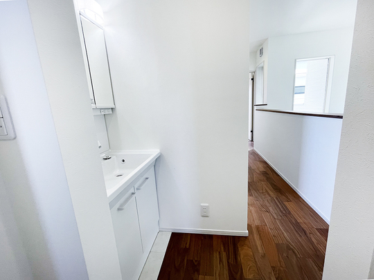 階段上った正面に、洗面台を設置しました。